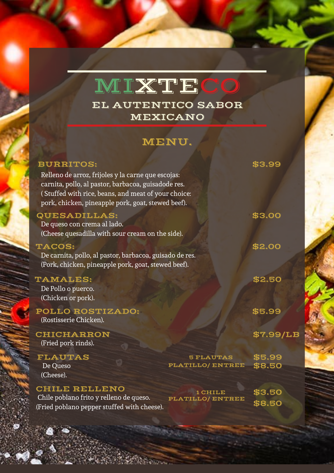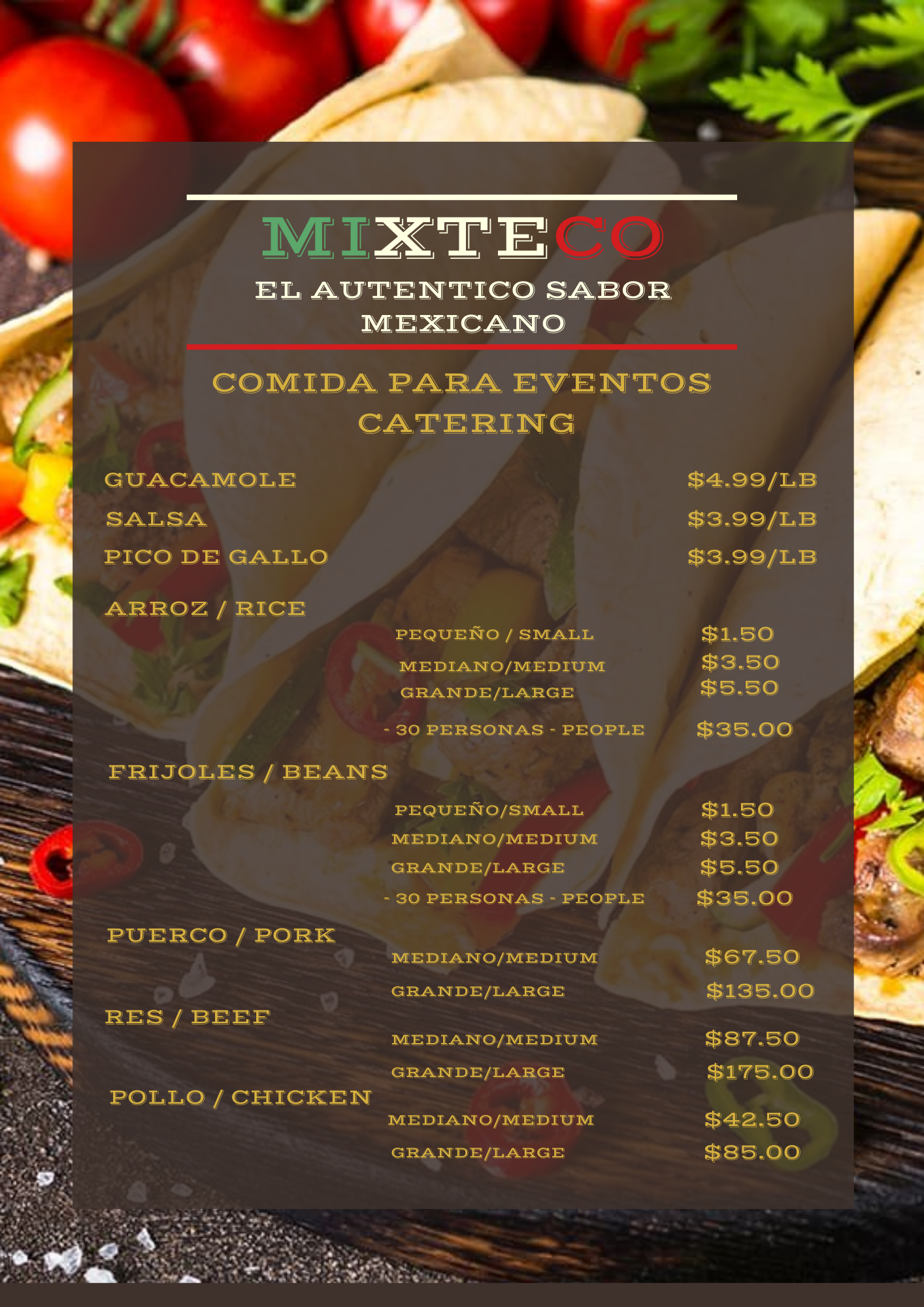 Mixteco Mini-Market & Butcher Shop was born in Bonita Springs Florida, as a company with authentic family character, dedicated to provide our customers with a wide variety of products and freshly made meals of the highest quality, we also have food delivery for events, focused on always giving excellent service and attention.